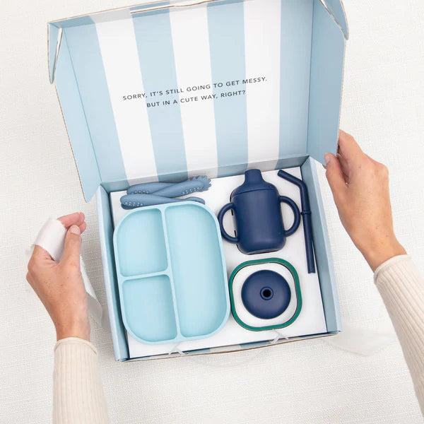 Ready, set, eat! Bella Tunno's expert-approved toolkit of mealtime essentials for baby’s first food and drink! This set is the perfect new baby gift and a parent must-have. Each set includes all of the products needed for the first moment of introducing solids to little ones. Each product is designed to be used from parent led weaning or baby led weaning to independent eating.