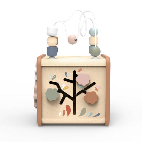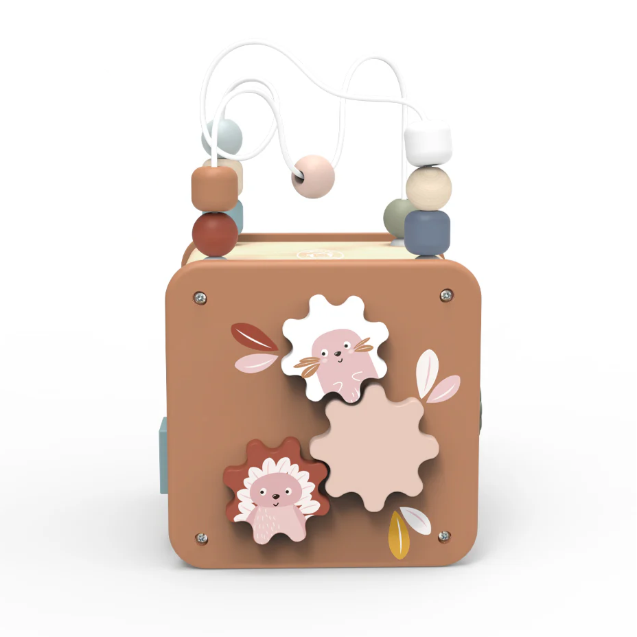 This 5-in-1 Wooden Activity Cube keeps little hands busy with a bead maze, shape sorter, gears, puzzle, and more. A fun way to build fine motor skills, problem-solving, and early learning—crafted in FSC®-certified wood with non-toxic finishes.