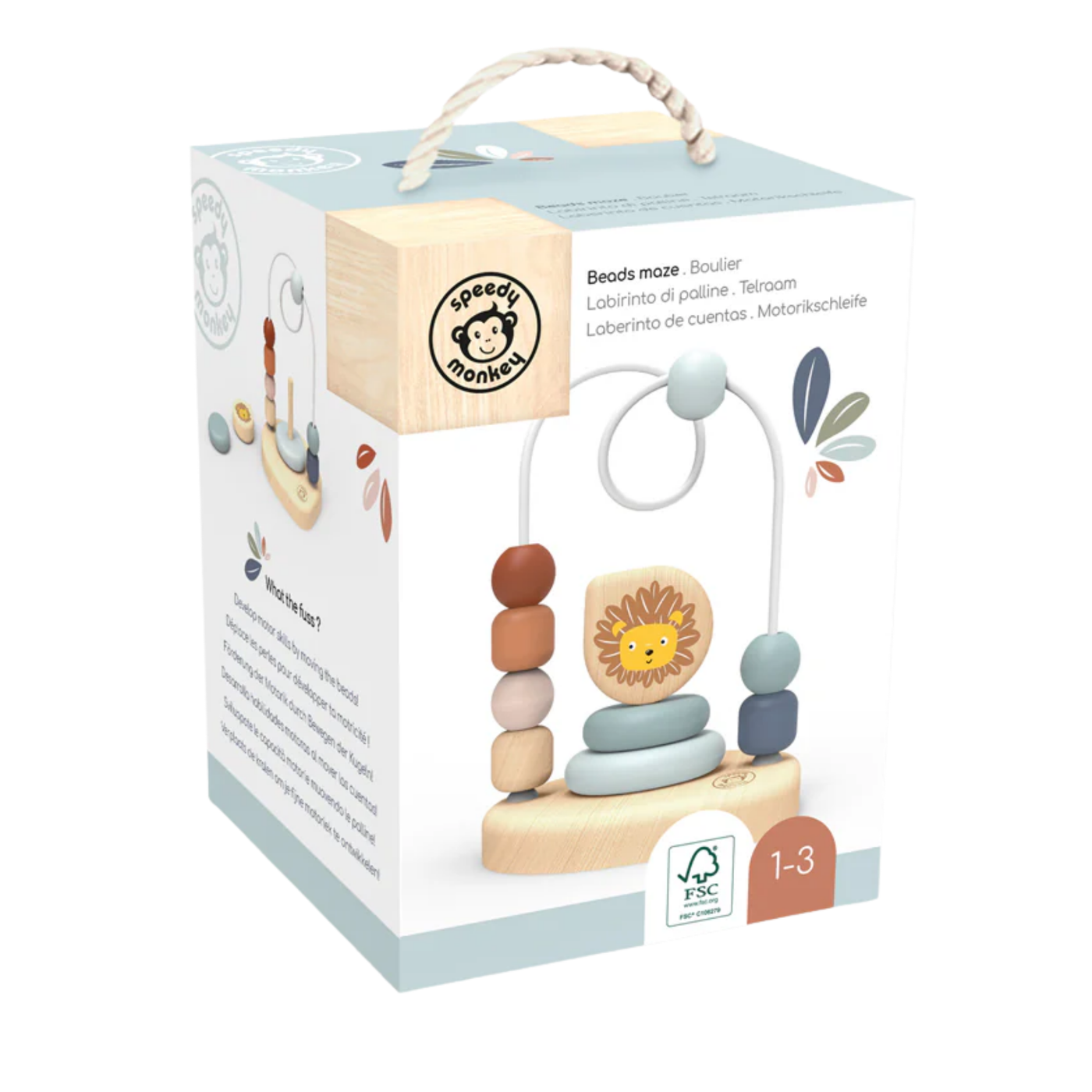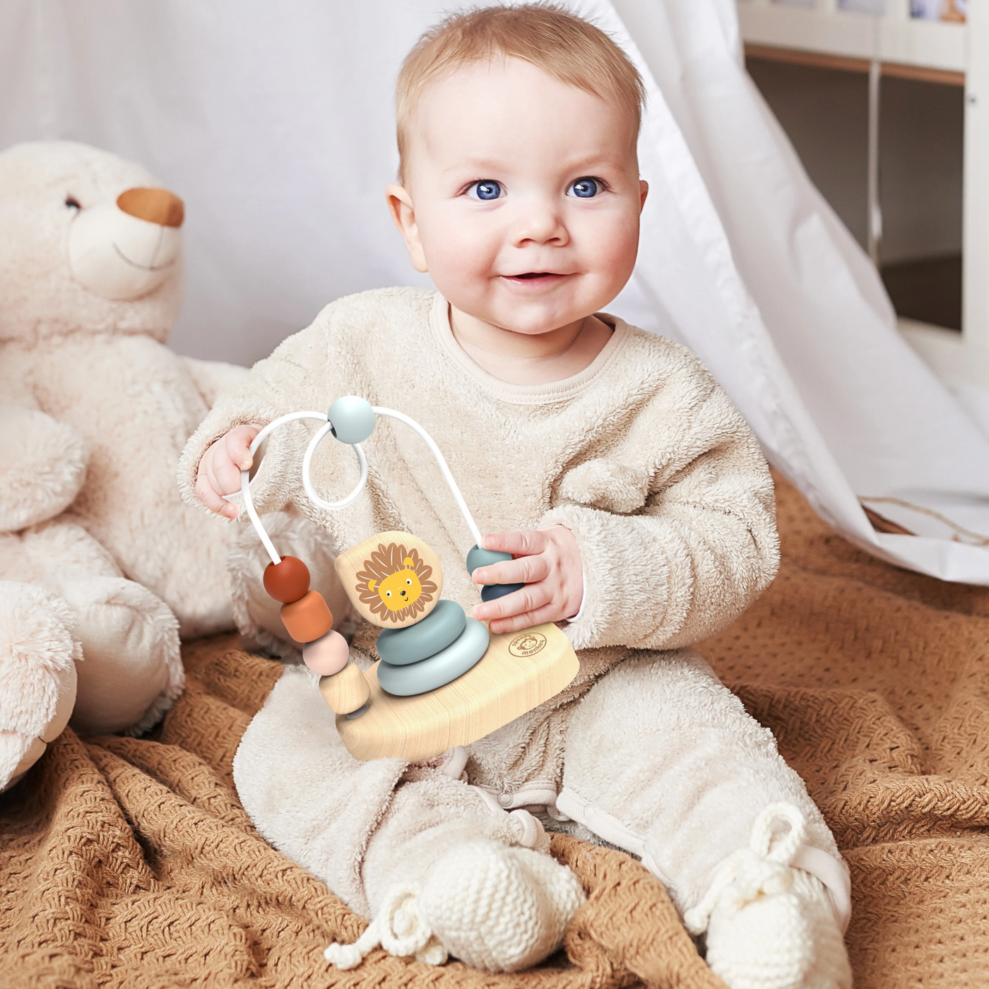 This adorable wooden bead maze with a cheerful lion design is perfect for keeping tiny hands busy while building essential early skills. Toddlers can slide the soft-colored beads over, under, and across the sturdy wire frame, practicing dexterity, hand-eye coordination, and color recognition along the way.