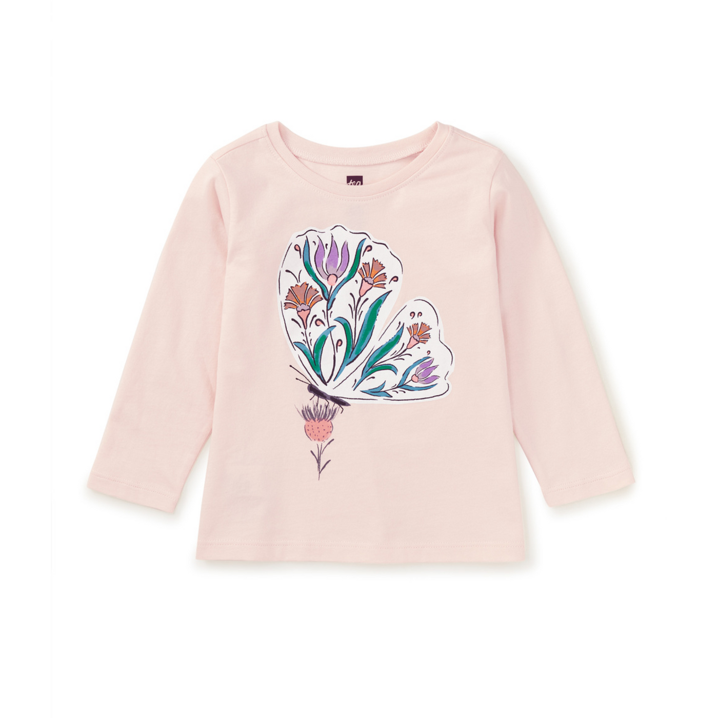 For your young nature lover, our in-house artists have created this original graphic of a butterfly gracefully perched on the tip of a flower. Our long sleeve tee pairs so nicely with Tea's Playwear Jeggings, joggers, and skirts. Crafted of 100% soft and stretchy cotton that keeps its color and shape wash after wash.
