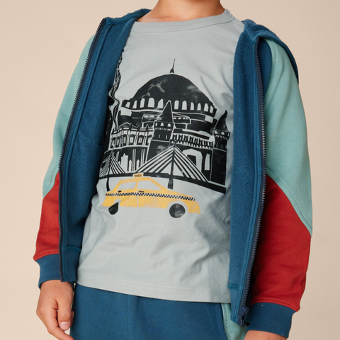 Let your kiddo take an exciting ride through the vibrant streets of Istanbul in this custom graphic featuring a bright yellow taxi set against the city's dramatic silhouetted skyline. This fashion-forward top offers a handsome, layered look without the bulk. Made with our signature soft and durable 100% cotton, this fall-ready long-sleeve tee will hold its color and shape, season after season.