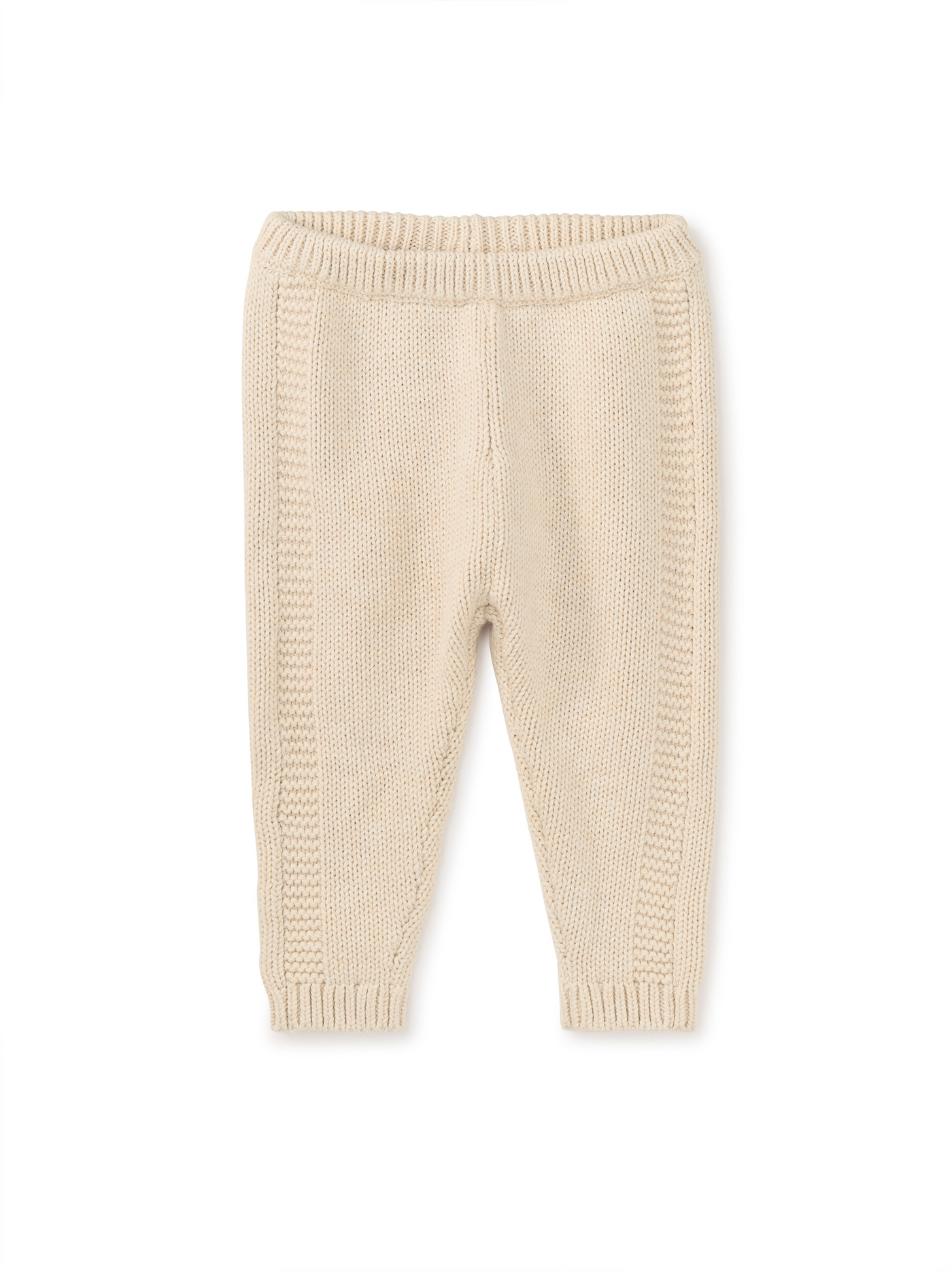 When the weather outside gets chilly, these soft cotton pants with stylish side stitching will keep your sweetie pie warm and cozy. The color is super matchable, prettily paired with a cardigan and long sleeve tee or bodysuit. Elastic waist for easy dressing and diaper changes. 100% cotton. Full length.