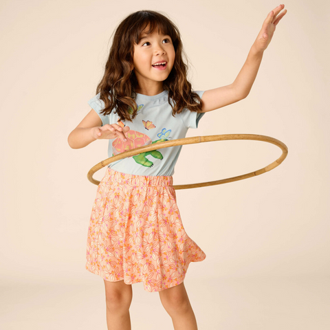 Just in time for spring, this exclusive graphic showcases a turtle chillin' with their flutter of colorful butterflies. Made from ultra-soft 100% cotton jersey, this one is as comfy as cute perfect for warm weather adventures. Pair with skorts, shorts, or skirts. Above thigh length.