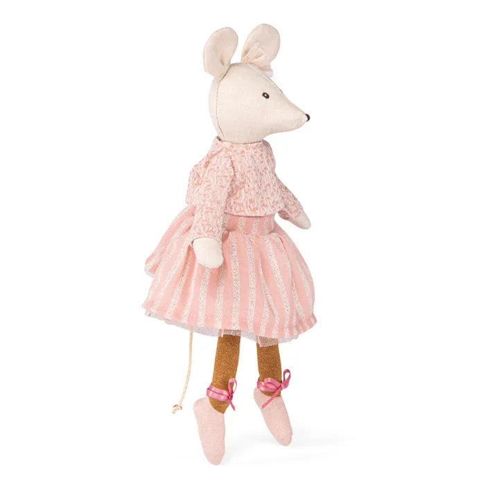 In this new collection, meet three sweet little chambray plain-weave fabric mice dolls with sweet embroidered faces and delicately powdered cheeks: Charlotte, Suzy, and Anna! They are dressed in their best glittery dancewear and are ready to become your new best friend.